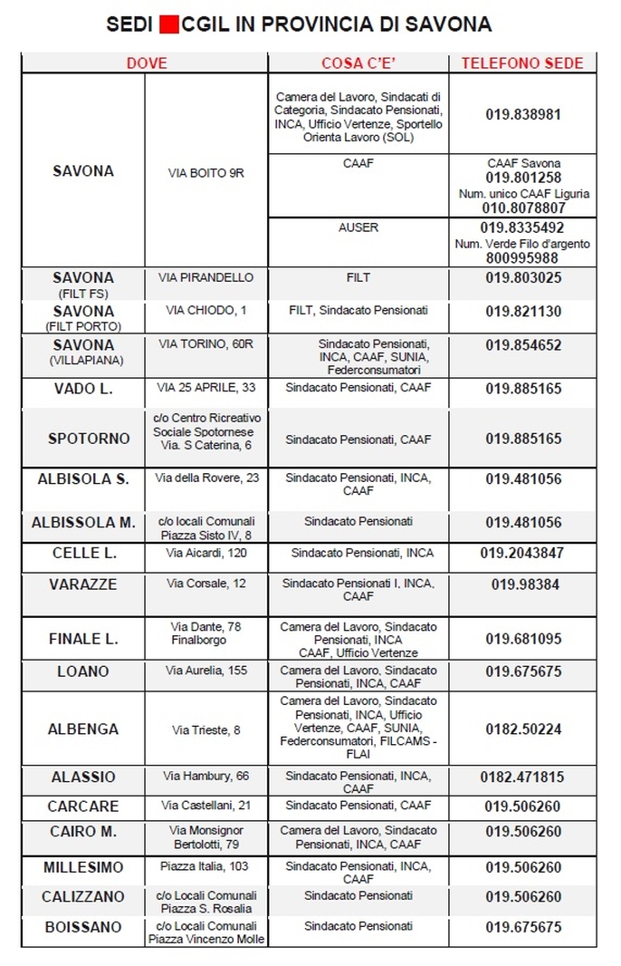 SPORTELLI CGIL informati presso i nostri sportelli: